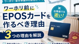 EPOSカードは海外生活で使いやすい?留学・ワーホリ経験者が実際に使った感想をもとに、メリット・デメリット、向いている人を正直レビュー。海外保険やサブカード目的で作る価値も解説します。